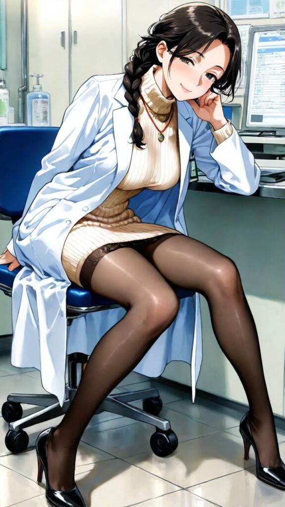 彼女の膝に折りたたまれた時間、踵が床に触れるたび、遠い午後の影が揺れる。