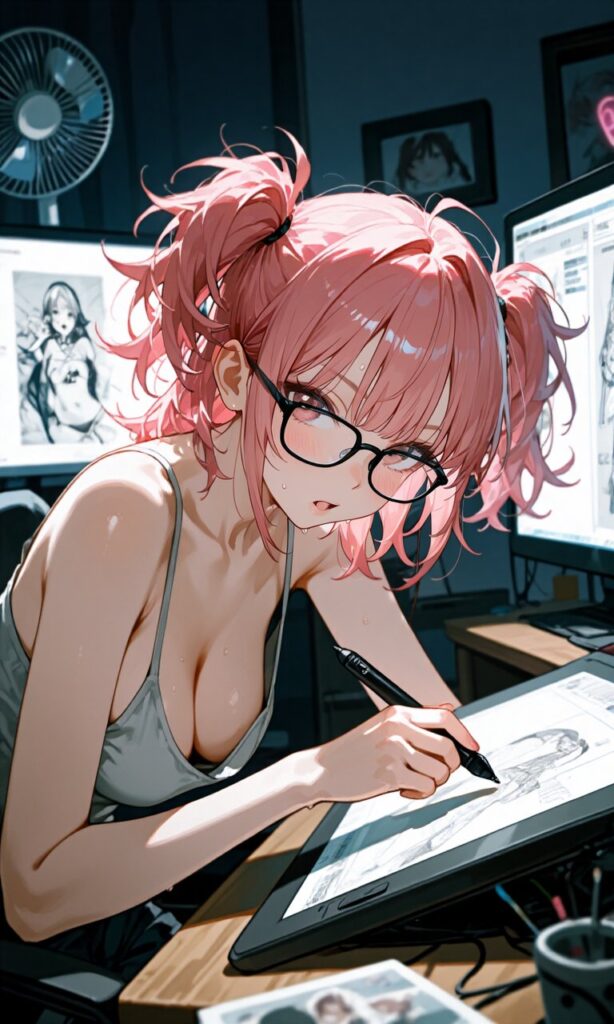 ピンク髪の眼鏡OL、残業灯に揺れる余白と鼓動