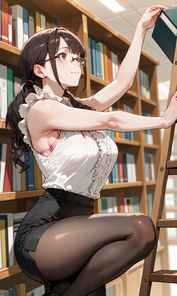 脚を揃えて、古いはしごの中段にそっと腰を落とす。