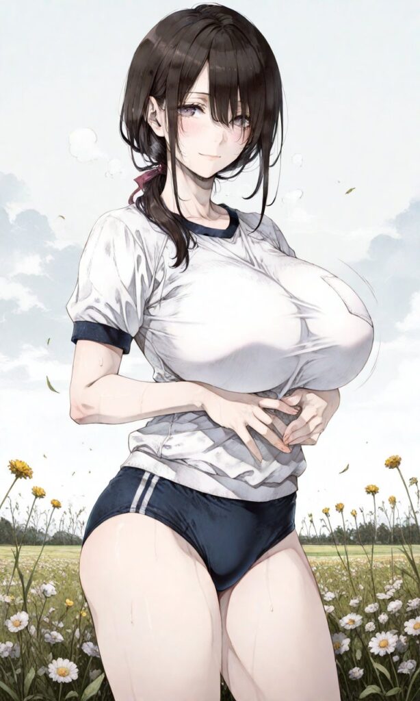 花の野に立つ彼女、光と風のささやきが残る