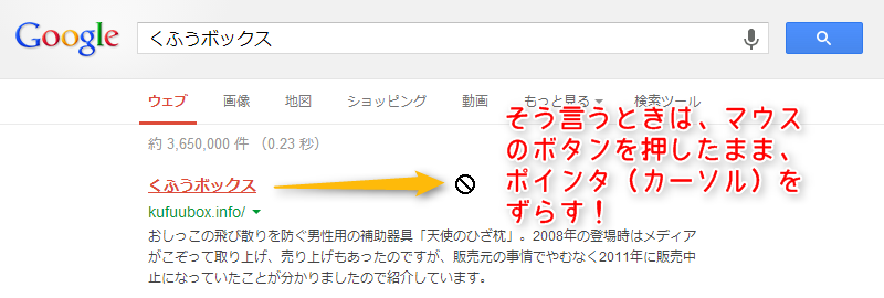 ということは、「誤クリックしても、そのままマウスのクリックから指を離さずに、アイコンやリンクからマウスのポインタ(カーソル)をズリッとずらす」と、クリックは確定しないということになります。