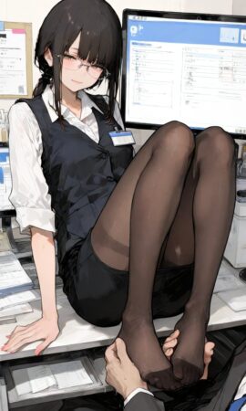 蛍光灯の午後、デスクで脚を組む彼女の気配